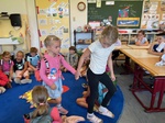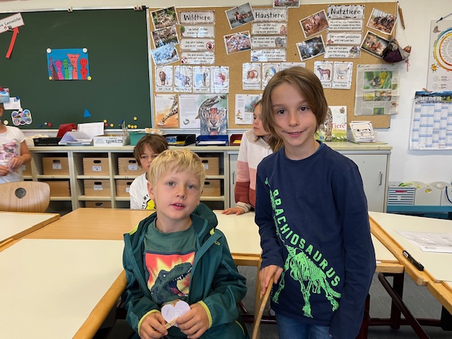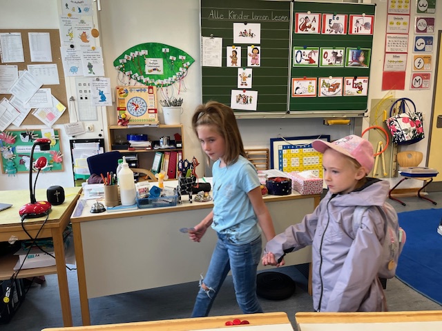 Was für ein aufregender Tag: Die Vorschulkinder durften ihre zukünftige Grundschule besuchen und in den spannenden Schulalltag schnuppern! Begrüßt wurden sie dabei von Frau Braun und der aktuell 2. Klasse, denn die zukünftigen Drittklassler übernehmen im kommenden Schuljahr die Patenschaft für die Erstklasskinder. Jedes Vorschulkind bekam von seinem Paten einen wunderschönen Anstecker geschenkt, damit sich die Kinder am ersten Schultag gleich wieder finden. Dann wurden die Vorschulkinder ins Klassenzimmer geleitet und gemeinsam wurden die Unterschiede zwischen Kindergarten und Schule hervorgehoben. Bevor es aber mit der ersten, richtigen Unterrichtseinheit losging, stand erst mal die beliebte Pause an. Dabei wurde gemeinsam mit den Paten gespielt, gelacht und geratscht, so dass sich gleich alle Kinder gut aufgehoben fühlten. An diesem Vormittag lernten die zukünftigen Erstklassschüler ein neues Lied, das Silbenklatschen und den Buchstaben „I, i“ kennen- vor allem aber erlebten die Kinder den Ablauf eines Schulvormittags. In Windeseile vergingen die beiden Schulstunden- und am Ende bekamen alle Kindergartenkinder einen wunderbaren Eindruck in die Welt der Schule, die ab September für alle einen neuen Lebensabschnitt markiert.