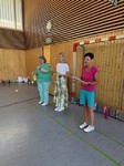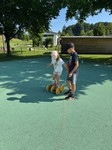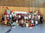 Am Dienstag, 01.07.25 fand die Knaxiade, ein beliebtes Sportprojekt unterstützt von der Sparkasse, an der Grundschule in Zusammenarbeit mit dem Kindergarten statt. Dabei handelt es sich um einen „Bewegungsspaß“ unter dem Motto „Mitmachen ist alles!“. Jedes Vorschulkind durchlief mit einem Paten aus der zweiten Klasse die Stationen. Die Schüler der Klasse 4a und 4b standen als Helfer zur Seite. Es wurden Sprossenwände überklettert, an Tauen geschwungen, auf Ziele geworfen, balanciert und vieles mehr. Die Sparkassenvertreterin Frau Hansjürgen machte sich vor Ort ein Bild von dem Sportereignis und freute sich über die vielen aktiven und fleißigen Sportler. Am Ende des heißen, anstrengenden, aber schönen Projekts erhielten die Vorschulkinder eine Urkunde und eine Medaille.