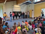 Das Schuljahr neigt sich dem Ende und die zweite Klasse verabschiedet sich bei ihrer Klassenlehrerin Frau Braun- gebührend mit einem tollen Ausflug nach Immling. Dort durften die Kinder in den ersten und zweiten Reihen die beeindruckenden Auftritte der Hauptfiguren Tamino und Tamina sowie all der anderen großartigen Opernsängern bestaunen und bewundern. Was für ein gigantisches Erlebnis: Meister Mozart- gleichzeitig der Dirigent – kam zu spät, Stau auf der A 8, so die kurze Erklärung, bevor er zum Dirigentenstab anhob und die Kinder in zwei faszinierenden Stunden in die Welt der berühmten Oper „Die Zauberflöte“ entführte. Am Ende der Vorstellung kam es dann noch zu einem weiteren Höhepunkt: Die gesamte Klasse traf die Opernsänger, die sich für ein gemeinsames Foto zur Verfügung stellten – und so entstand ein wunderbares Abschlussfoto, das bestimmt bei jedem Kind noch sehr lange im Gedächtnis bleibt!