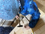 Sehr interessant fanden wir, dass die Paletten vom Samerberg weit in ferne Länder verschifft werden. Jetzt wechselten die beiden Gruppen. Die „Sägewerksgruppe“ durfte in die Zimmerei gehen und auf kleinen Holzbrettern Sterne oder Herzen nageln. Begeistert wickelten die Kinder anschließend dicke Wolle darum. Fertig war das schöne Werkstück, das sie mit nach Hause mitnehmen durften.
