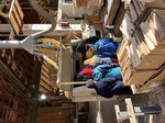 Diese Bretter kamen zur weiteren Verarbeitung in die Lagerhalle. Dort beobachteten wir, wie die einzelnen Paletten gefertigt werden. Am spannendsten fanden die Kinder einen großen Roboter, der die Nägel zur Befestigung der Paletten in das Holz schlug.