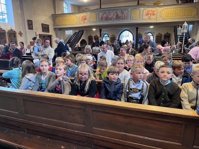 Aufgeregt trafen sich 33 Erstklasskinder am 16. September vor der Törwanger Kirche. Denn der 1.Schultag begann nicht in der Grundschule, sondern startete mit einem feierlichen